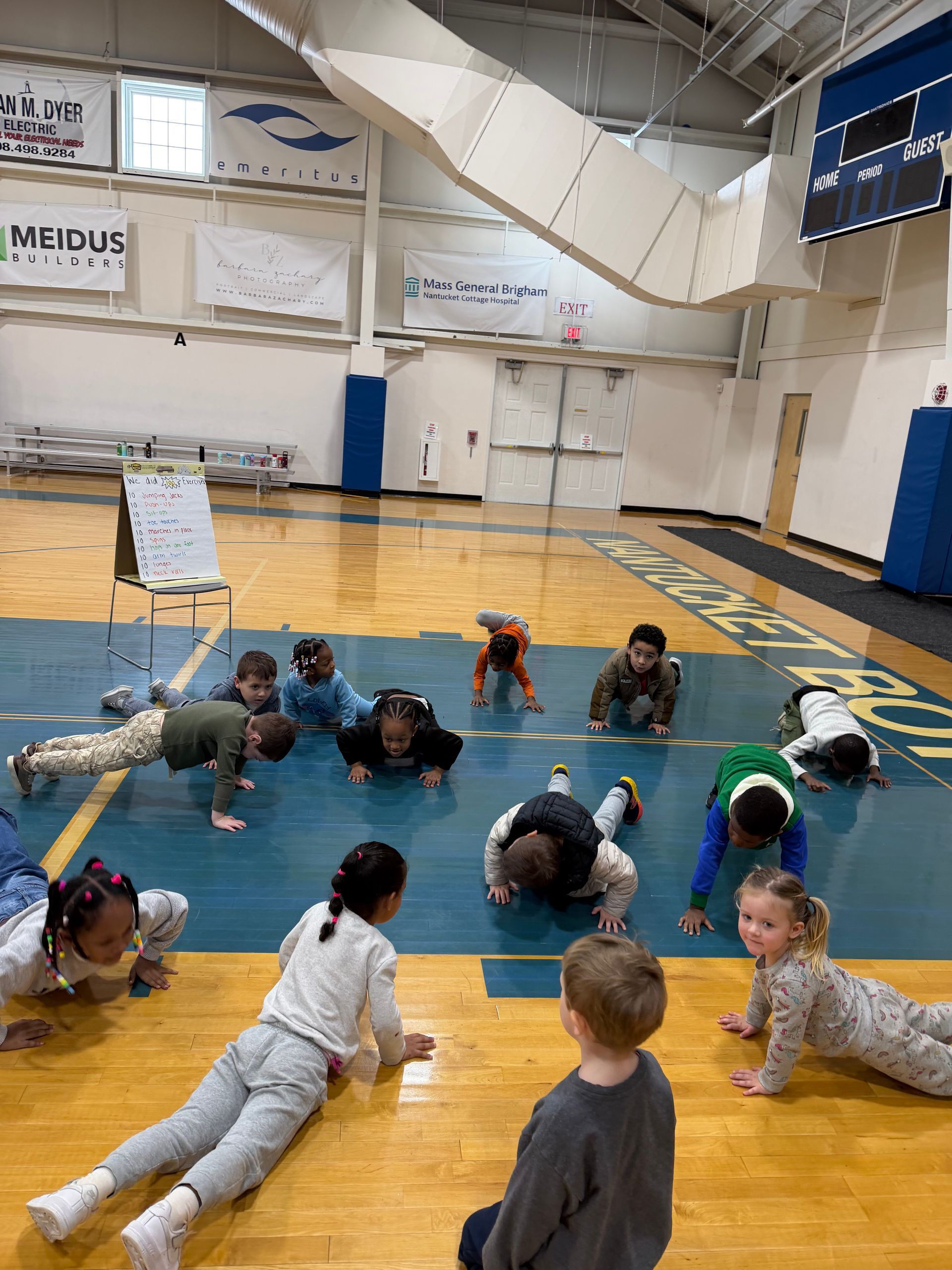 The preschoolers also spent the day getting their movement through a series of 100 exercises including jumping jacks, push ups, marches, hops, spins, and stretches. It’s easy to say that nap time came with minimal retaliation.